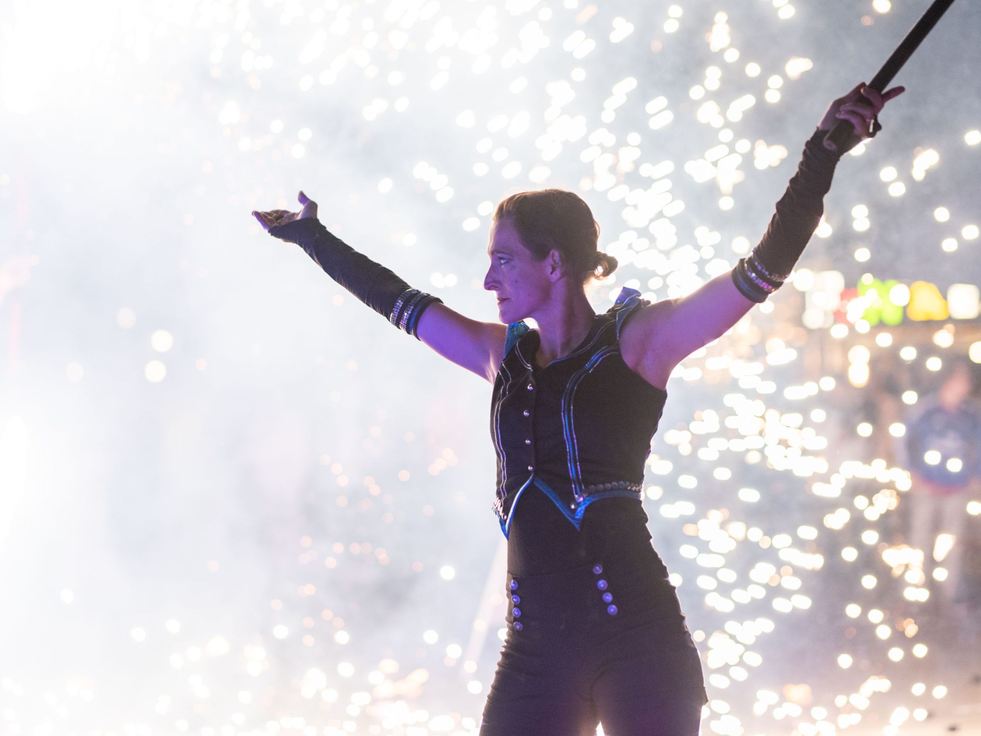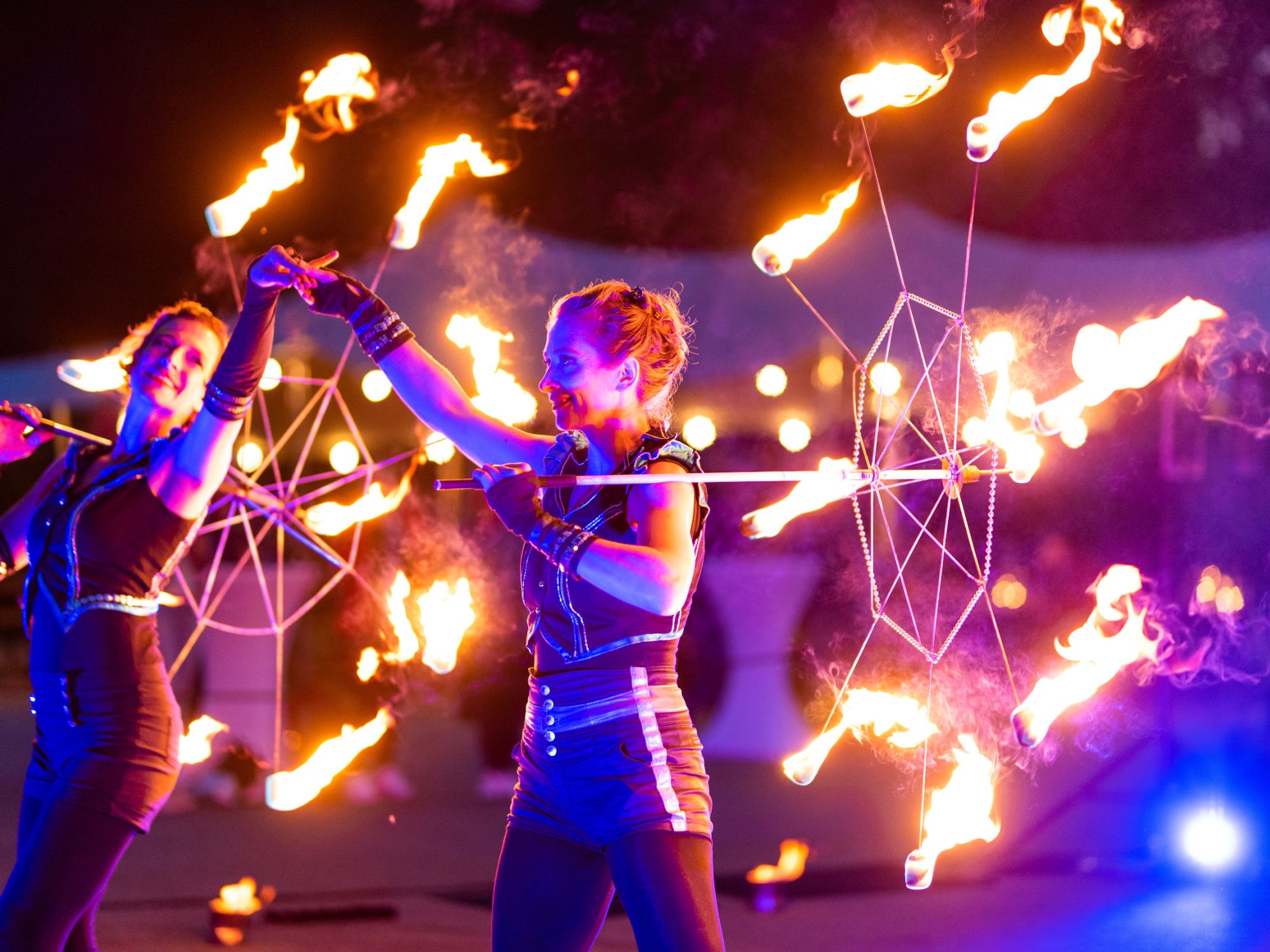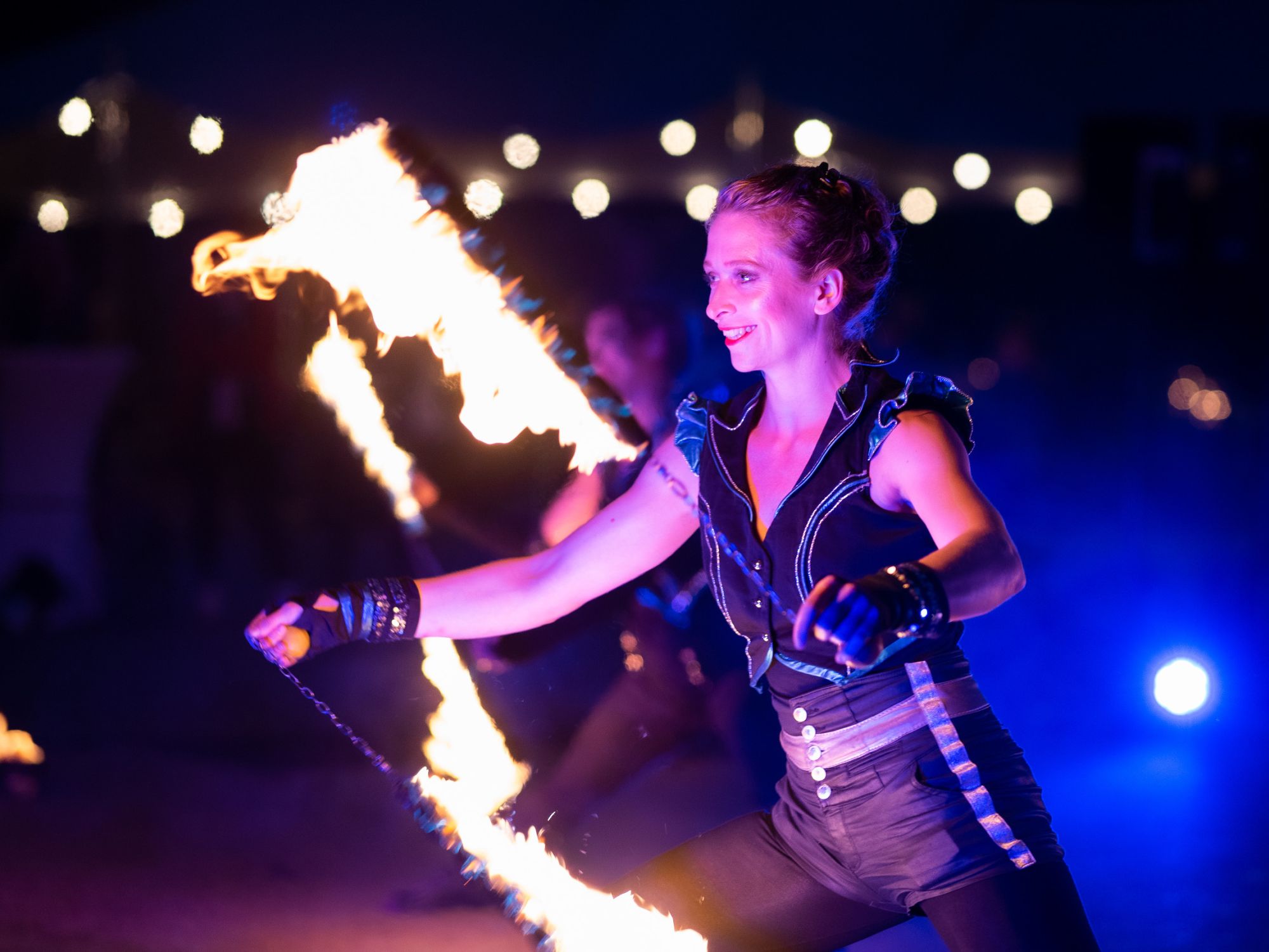 Auf dem Platz der Waldbühne setzten wir drei Feuer- und Lichtshows um. Speziell für diesen Anlass choreografierten wir eine neue Feuershow mit vier Artist*innen. Wunderschöne Flammenbilder wechselten sich ab mit funkelndem Feuertanz und überraschenden Effekten. An vier Sommerabenden konnten die Gäste bei schönstem Wetter die Lichtinstallationen im Stadtpark und unser Show-Programm genießen.