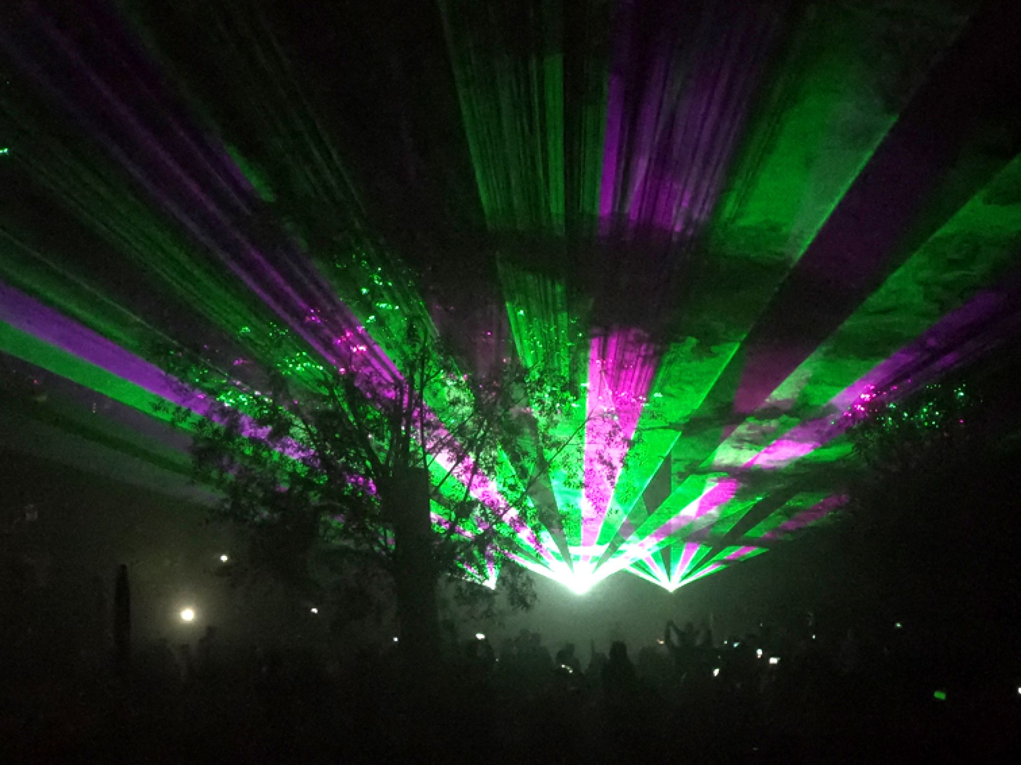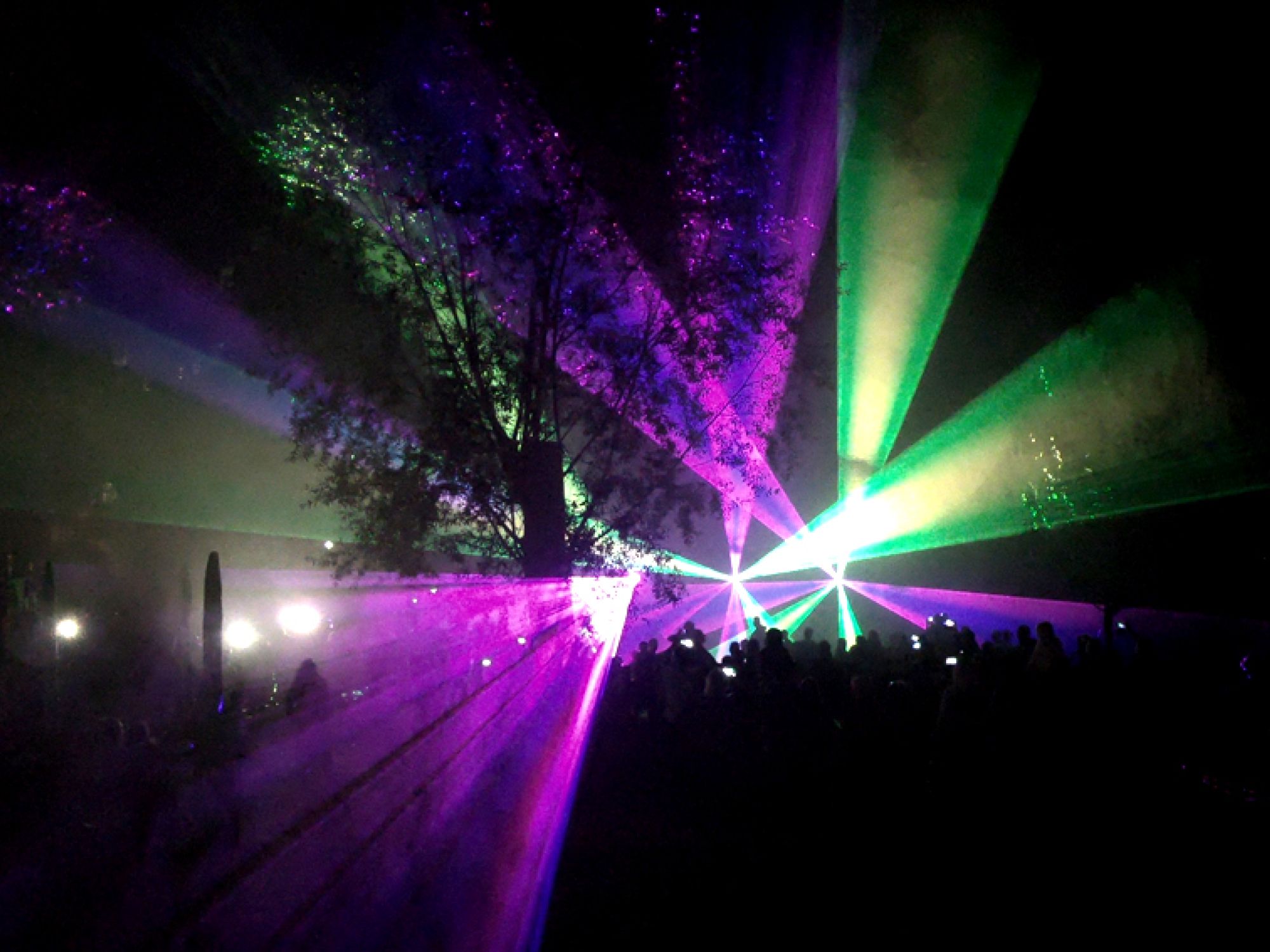 Zum Abschluss der Veranstaltung führten wir eine Musik-synchrone Lasershow durch. Dabei kamen drei Laserprojektoren auf Traversenstehern und zwei Nebel- und Windmaschinen zum Einsatz.