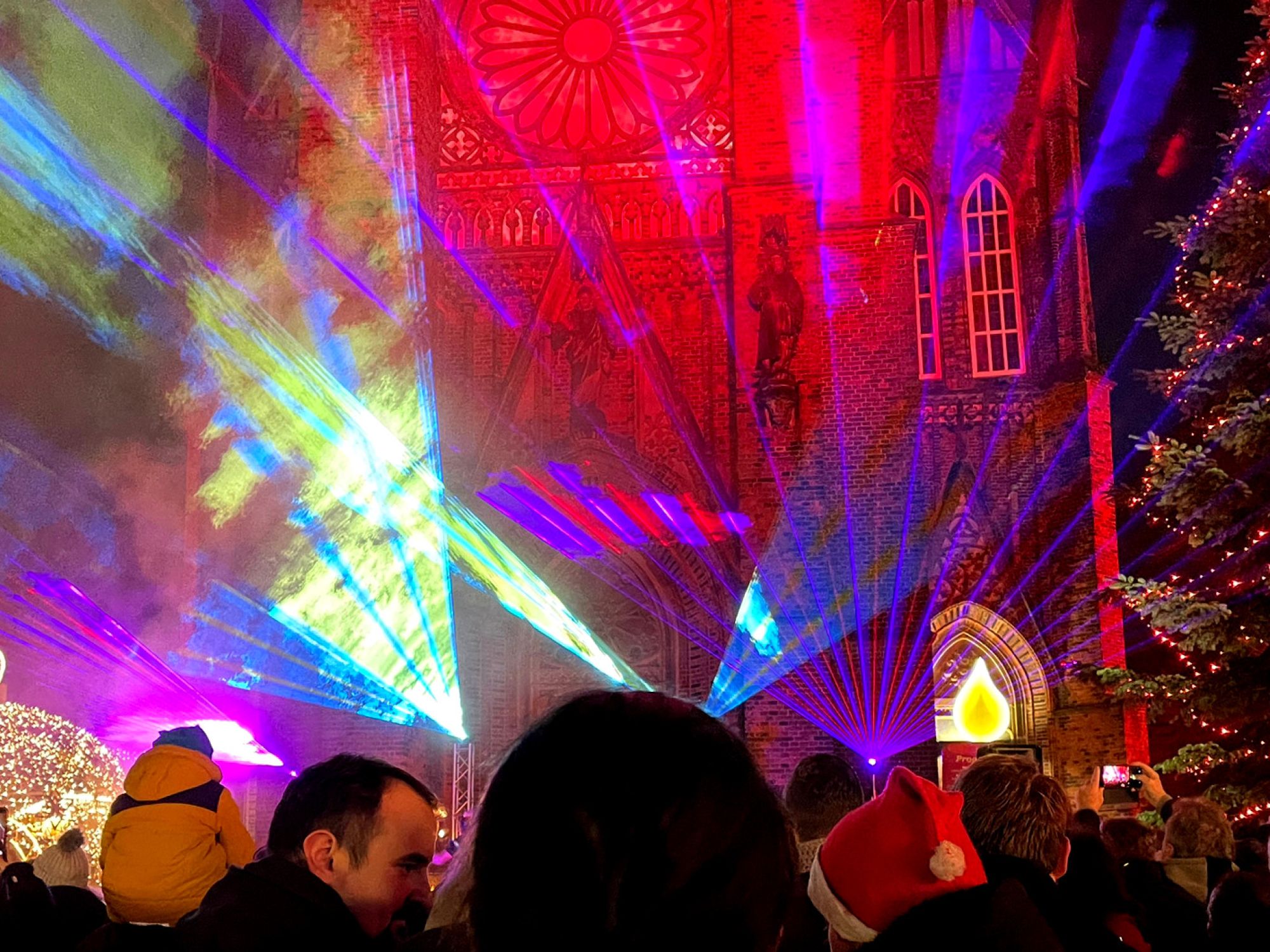 Zum abendlichen Ende des Weihnachtsmarktes sammelten sich zahlreiche Gäste, die ordentlich Applaus und gute Stimmung mitbrachten. Die Feuer- und Lasershow in Bremerhaven war für uns ein echtes Jahres-Highlight. Der Platz vor der Großen Kirche war für die Umsetzung unserer Show wunderbar geeignet. Darüber hinaus war es wieder einmal schön, mit dem Team von Erlebnis Bremerhaven zusammenzuarbeiten. Wir danken euch für die tolle Unterstützung, die gute Laune und den heißen Tee!