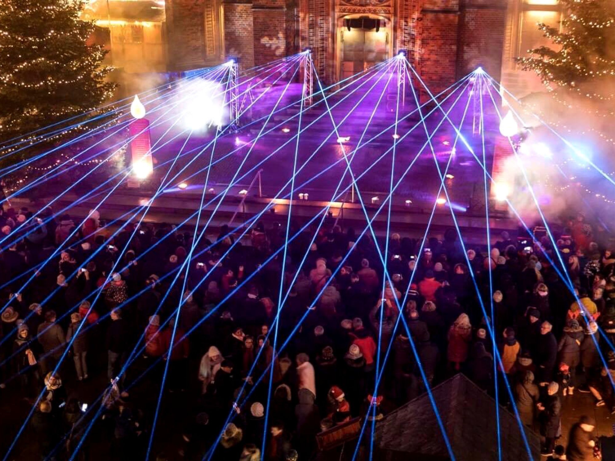Für die Erlebnis Bremerhaven GmbH setzen wir seit 2018 jährlich eine Feuer- und Lasershow auf dem Weihnachtsmarkt um.