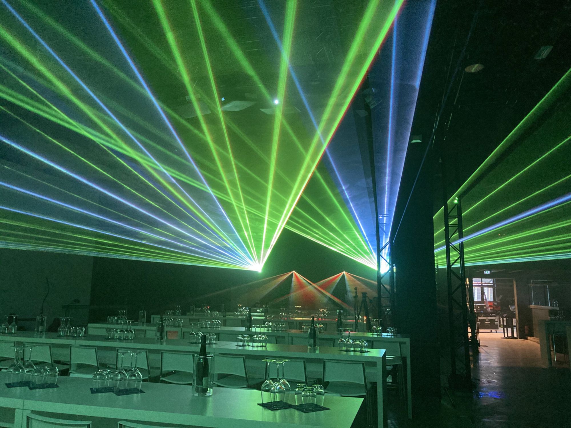 Nachdem wir mit dem Organisationsteam für Feedback und Korrekturen 3D-Visualisierungen der Lasershow-Programmierung ausgetauscht hatten, lieferten wir in der Alten Münze Berlin ein überzeugendes Live-Ergebnis ab: Die Gäste waren begeistert!