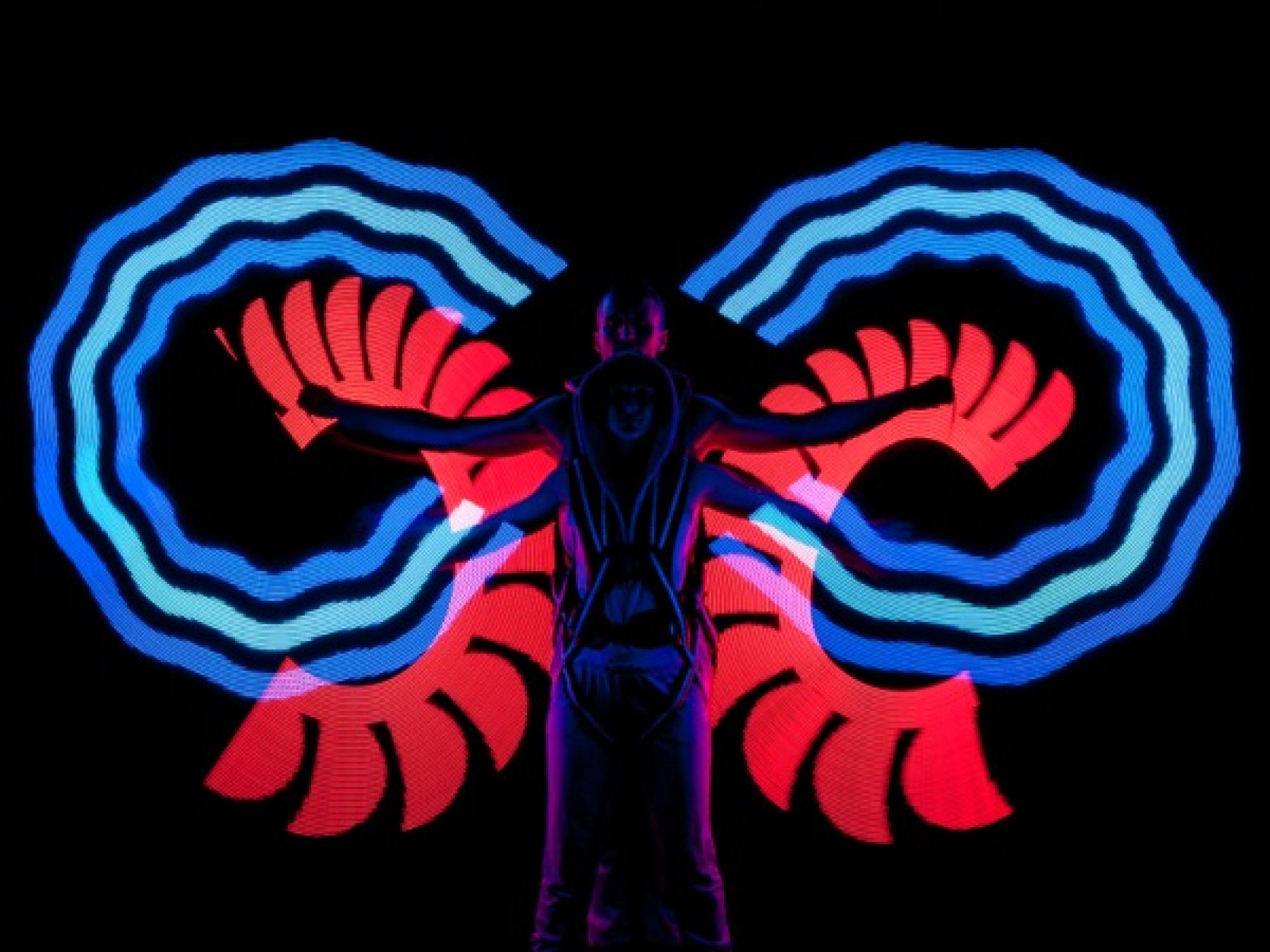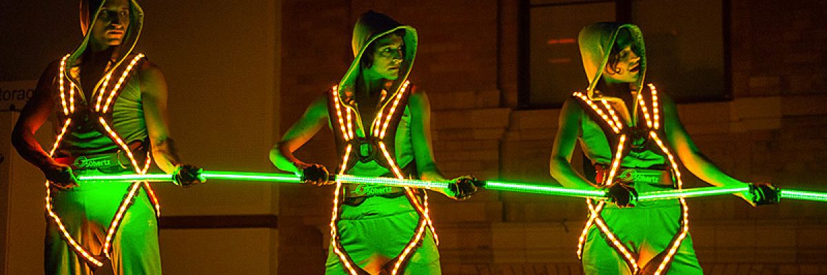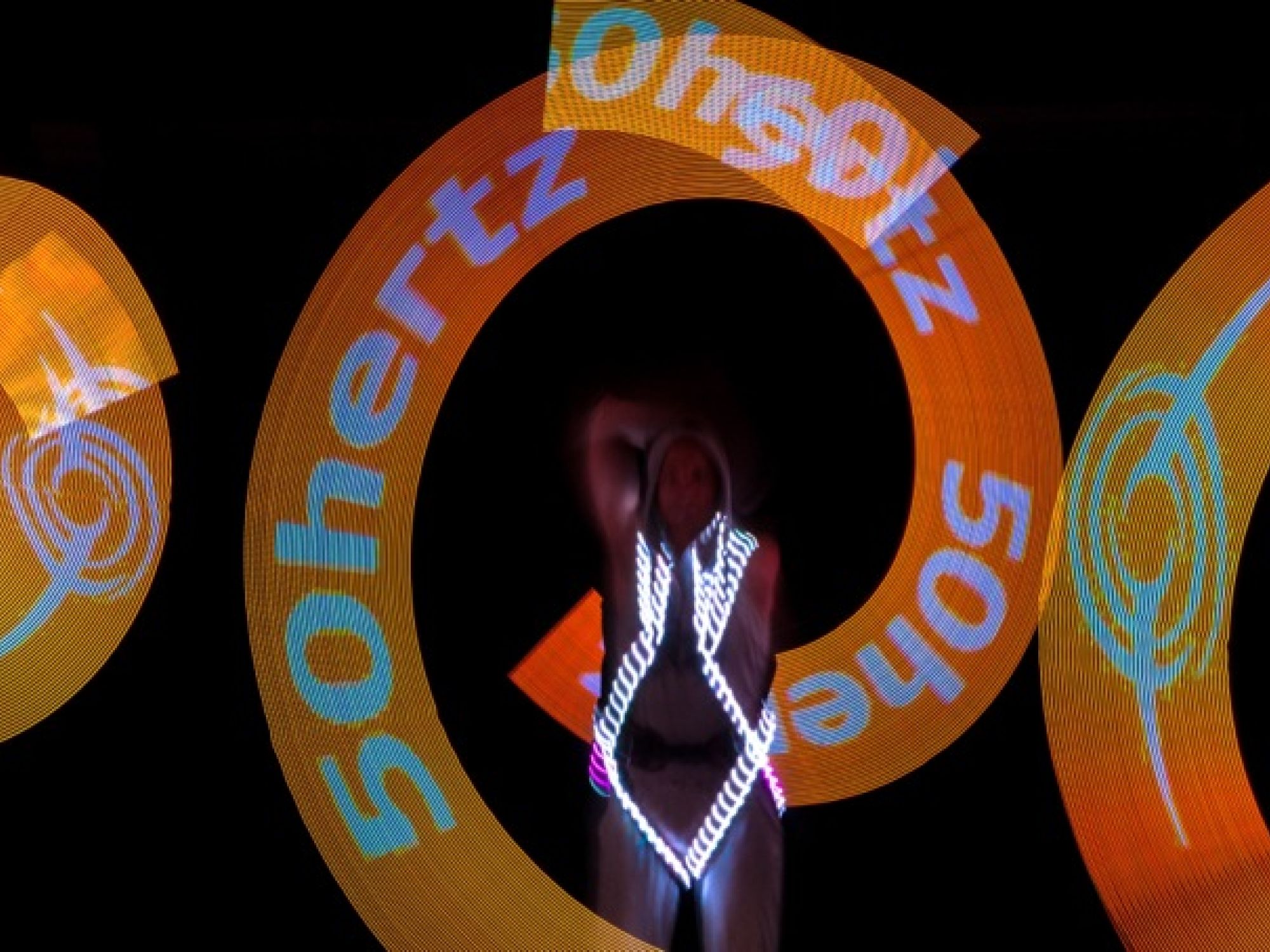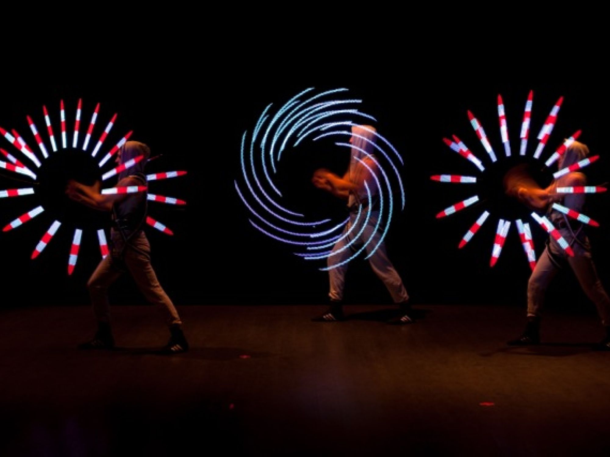 Für unseren Kunden 50Hertz brachten wir das Thema „Nachhaltige Energiegewinnung aus Wasser, Wind und Sonne“ artistisch auf die Bühne. Dafür choreografierten wir einen Lichtshow-Act mit Musik-synchron programmierten LED-Requisiten und Computer-gesteuerten Lichtkostümen.