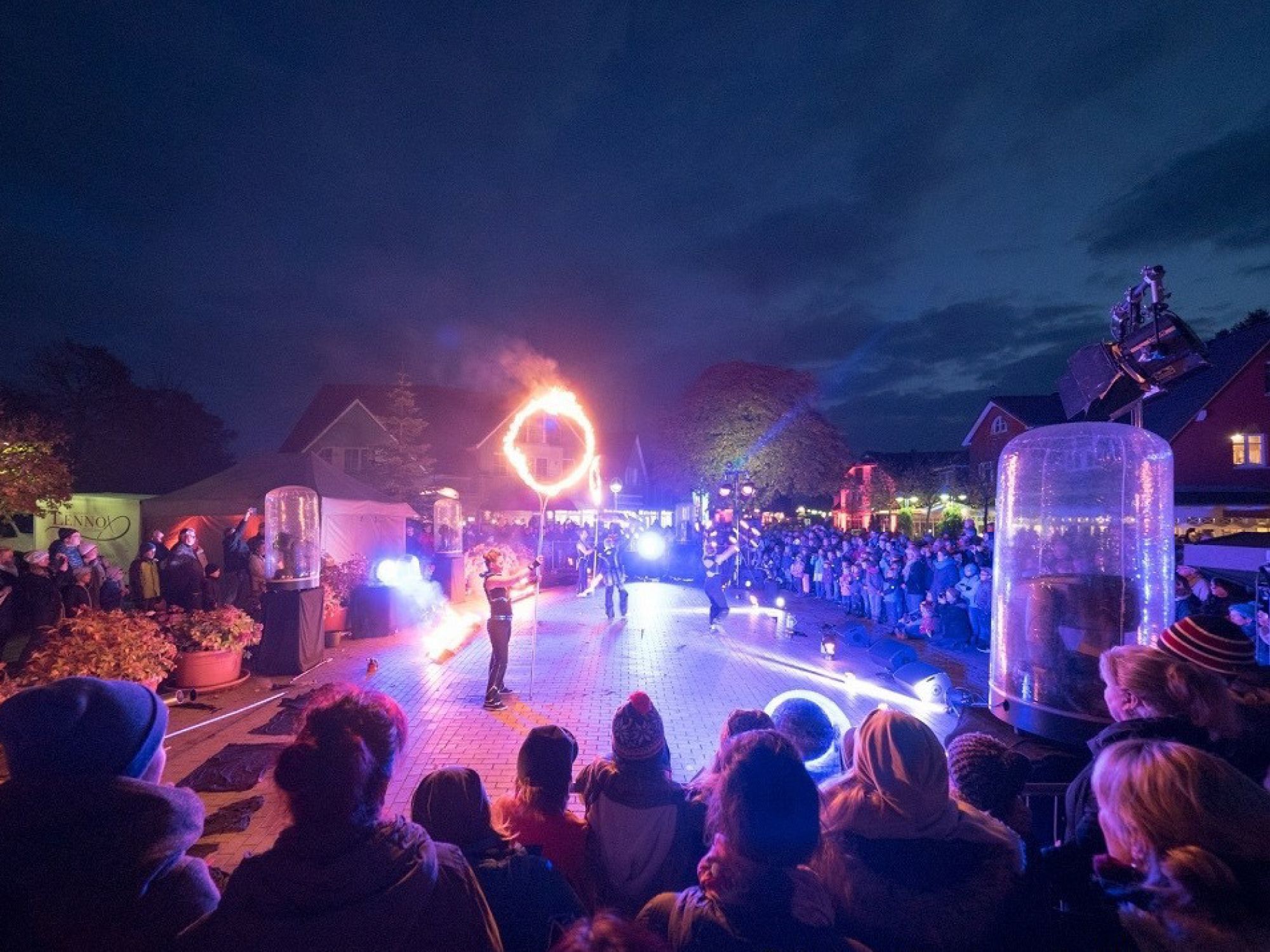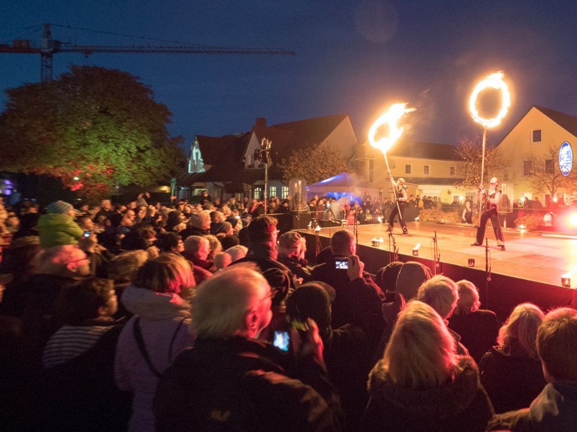 An den Abenden erleuchtete das Ostseeheilbad Zingst entlang einer Eventstrecke mit stimmungsvollen Illuminationen und Fassaden-Projektionen, Show-Acts mit Feuer, Licht und Laser auf zwei Bühnen und märchenhaften Lichtgestalten zwischen Seebrücke und Hafen.